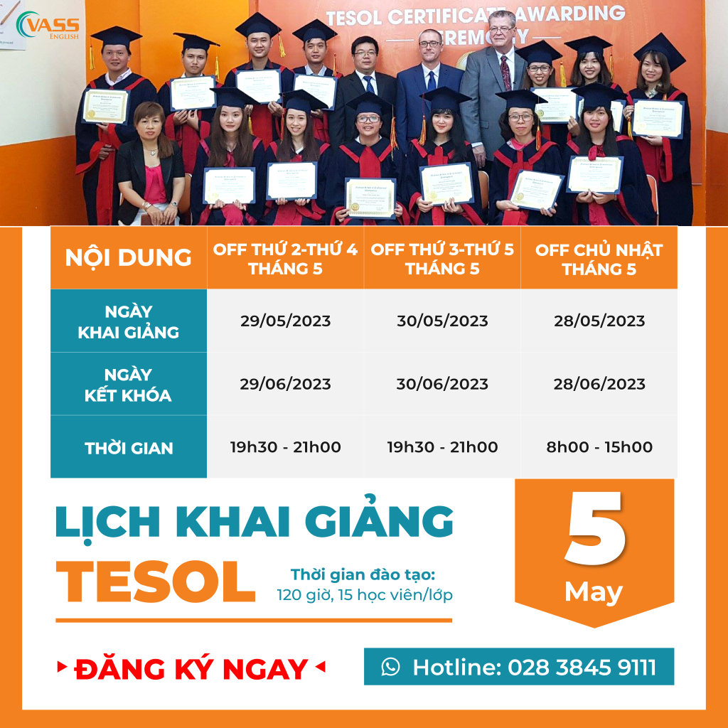 LỊCH KHAI GIẢNG KHÓA HỌC TESOL THÁNG 05/2023 TẠI VASS – ĐĂNG KÝ NGAY!