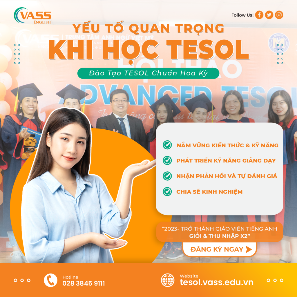 Bạn đang tìm kiếm một khóa học TESOL chất lượng, chuyên nghiệp và đáp ứng được các yêu cầu của ngành giáo dục hiện đại? Vậy thì đừng bỏ lỡ cơ hội tham gia khóa học TESOL tại VASS trong tháng 05/2023. Khóa học TESOL (Teaching English to Speakers of Other Languages) là một khóa